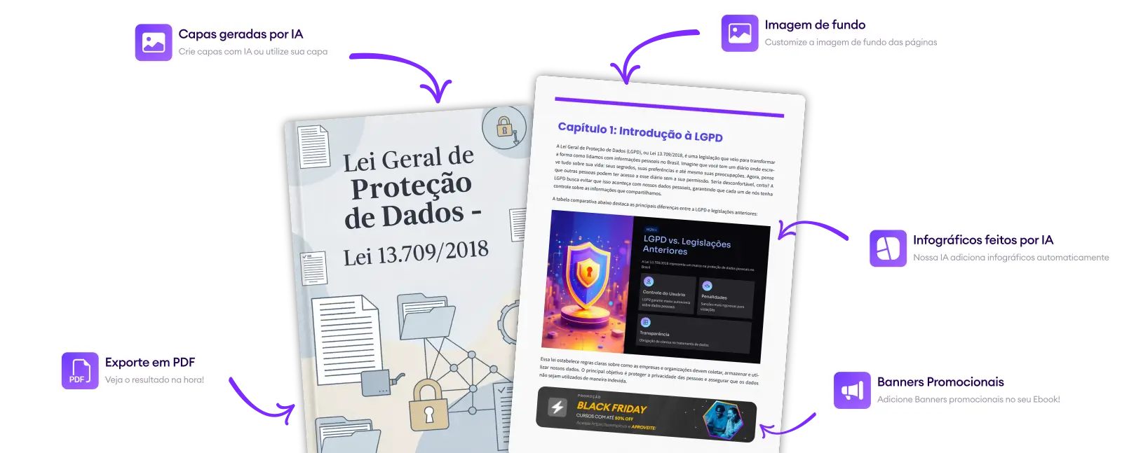 Transforme ideias em ebooks profissionais sobre qualquer tema — de culinária a Programação - com nossa IA especializada. Tudo em minutos!